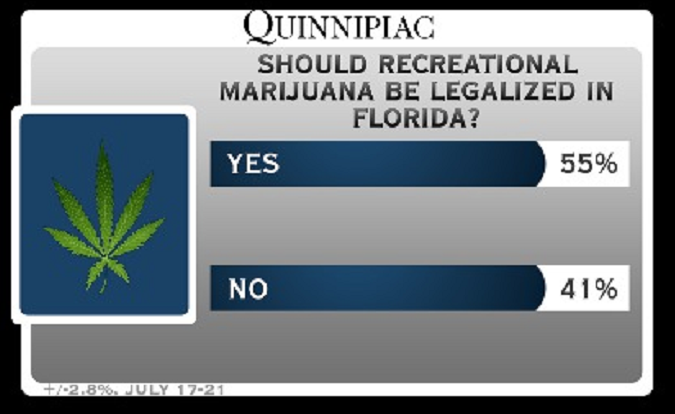 But the movement to legalize marijuana, both in medicinal and recreational forms, has been picking up steam. The New York Times editorial board just published an article this week calling for the federal government to repeal the ban on marijuana. And a new Quinnipiac poll in Florida shows young voters in the state calling for the legalization of recreational marijuana, while others polled favored legalizing medicinal marijuana 9-1.