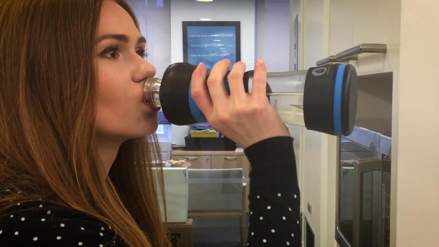 Squeeze the fruit before plopping it in the glass for a real boost in flavor. Try a reusable bottle with a special slot for “add ins.”