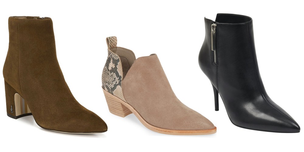 These Vince Camuto booties come in black, camel and snakeskin. The pointed toe is so flattering, as is the short chunky heel. These would look great paired with tights and a sweater dress or even with jeans on the weekend.