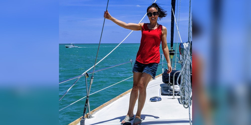 Psychotherapist and author Amy Morin on her sailboat.Courtesy of Amy Morin.