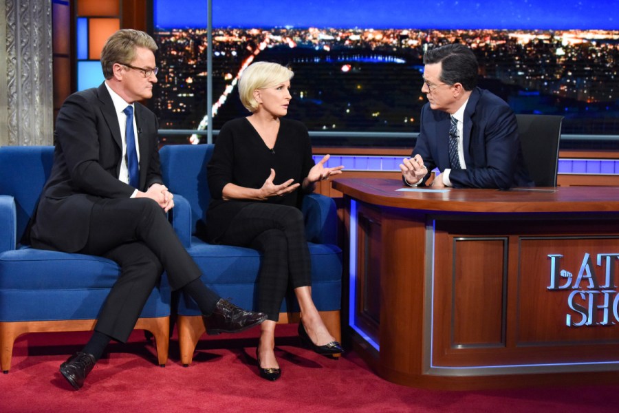 On Monday night, Brzezinski and Scarborough also appeared on “The Late Show with Stephen Colbert” to offer tips to women facing confidence issues in the workplace.