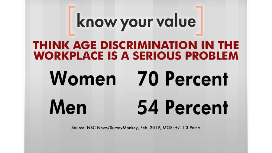 Most women — 70 percent — believe age discrimination in the workplace is a serious problem, compared to 54 percent for men. Meanwhile, 31 percent of women over 50 have personally experienced age discrimination at the office, according to the study by the NBC News Polling Unit and Survey Monkey.