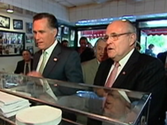 Romney, Giuliani eat pizza, visit NYC firehouse on anniversary of OBL death