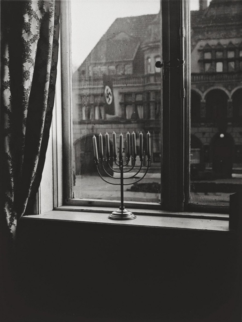 In the hostage footage, Hersh says that lighting candles in the tunnels reminds him of a 1931 photograph: a family’s Hanukkah menorah glowing on a windowsill, a Nazi flag hanging from the building across the street.