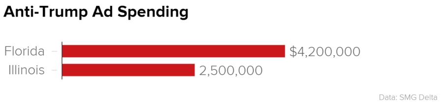 Outside groups have spent $11 million in advertisements attacking Trump in the March 15 primary states of Florida and Illinois.