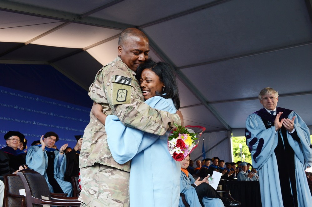 Robinson hopped on a military flight, traveled more than 6,500 miles, and on Monday, he walked on to Columbia University’s campus in New York, still dressed in fatigues and hauling a duffel bag. When his daughter Ruby Robinson received her engineering diploma, she turned and saw the father she hadn’t seen for half a year. It was a surprise and an emotional reunion for both.