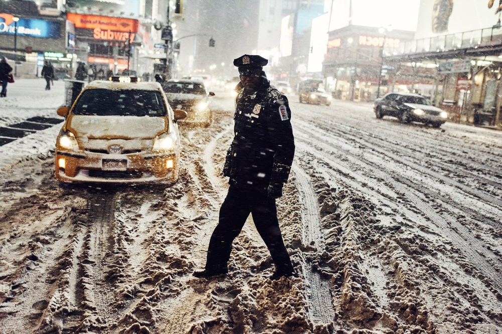A taxi dispatcher on 7th Ave near Penn Station as commuters try to get home before the approaching storm on Jan. 26, 2015.Photo by Thomas Prior for MSNBC