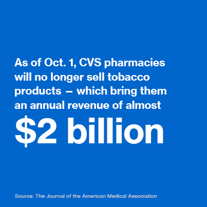 On Tuesday morning, one of the nation’s biggest pharmacy chains, CVS Caremark, announced that it will clear its shelves of cigars, cigarettes, and other tobacco products this year, giving up almost $2 billion in sales in order to brand itself as a health care company rather than a convenience store.