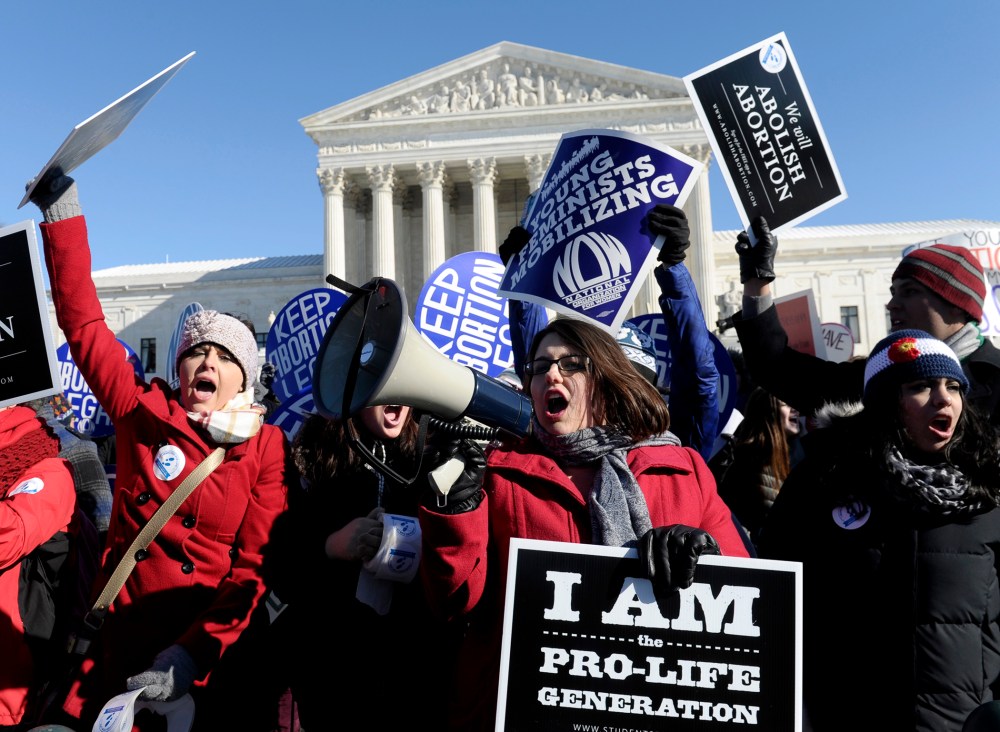 Pro-abortion and anti-abortion protestors rally outside the Supreme Court in Washington, Jan. 22, 2014.AP