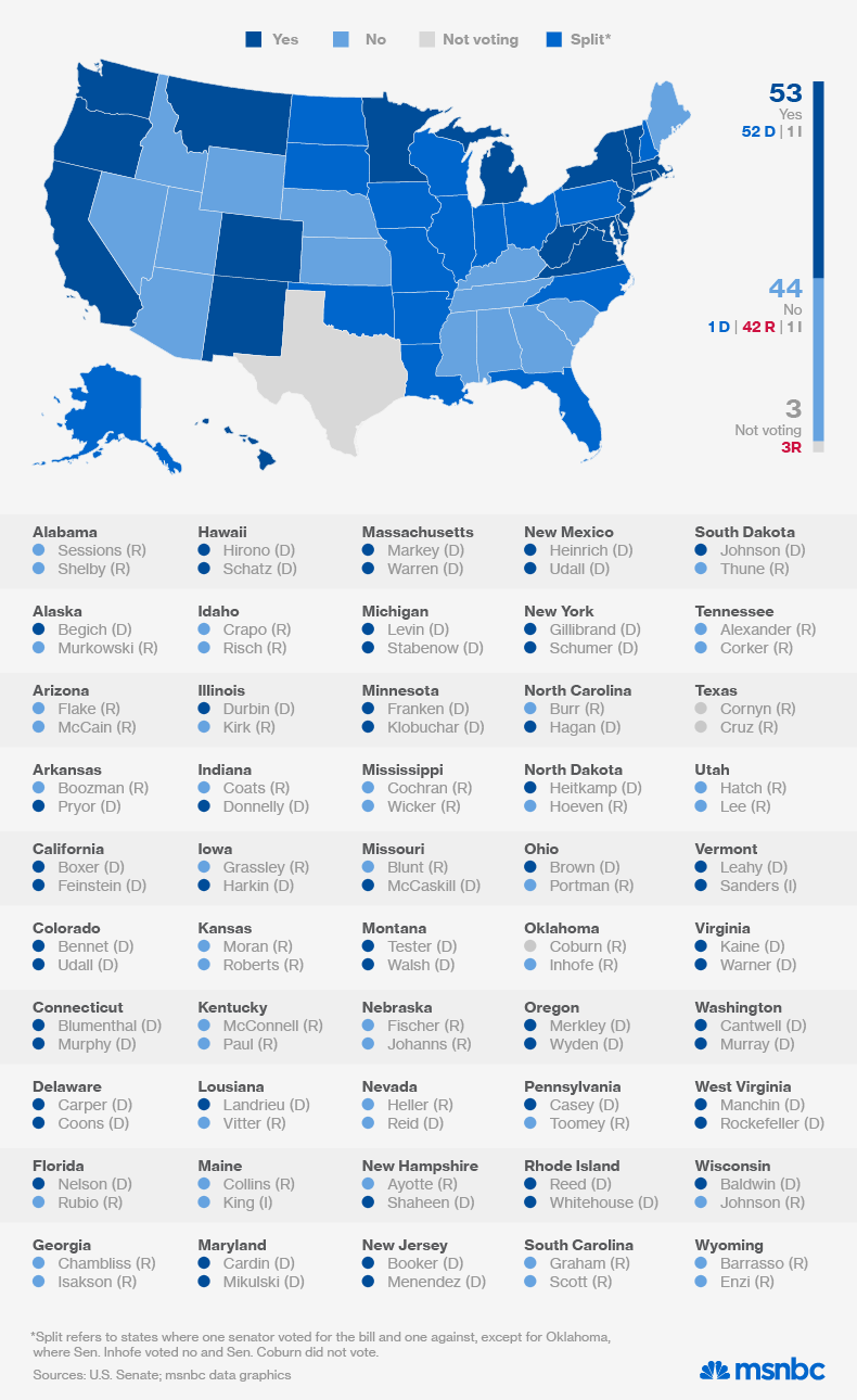 The U.S. Senate fell seven votes short of the 60 required to pass the bill that would expand equal pay and protections against discrimination.