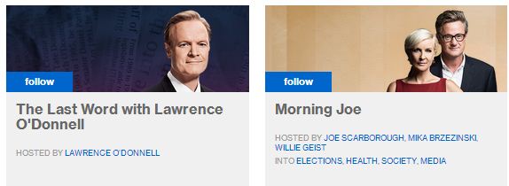 Follow buttons are showcased throughout msnbc.com. By “following,” a user selects content to populate a personal digest. This provides the user a custom newsfeed showcasing the latest content from areas they’ve identified as important and notifying them of responses to actions they’ve taken.