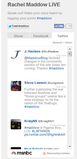 We recognize that conversations occurring outside msnbc.com on social media platforms are crucial to our community and so, instead of separating that discussion, we created modules for viewers to monitor and participate in the live “watch parties” that happen nightly during their favorite live programming.