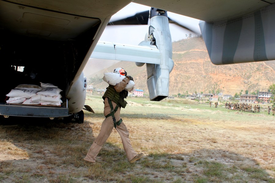 US Marines delivering food aid from the air to Nepal