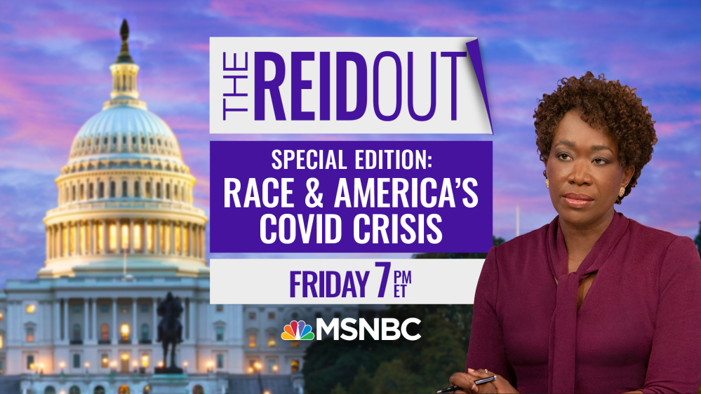 On Friday, February 26 at 7 p.m. ET, MSNBC’s Joy Reid will present an hour-long event “A ReidOut Special Edition: Race & America’s Covid Crisis,” an in-depth look into the Covid-19 vaccine rollout, the disproportionate health equities impacting communities of color and its devastating impact.