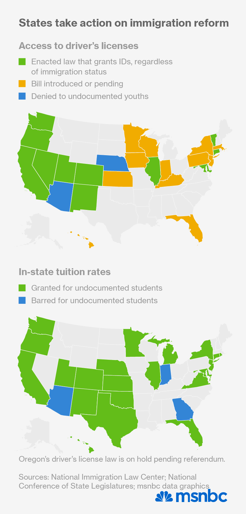 Sacramento Montoya, center, waits to speak at a workshop on a new law that allows undocumented immigrants to get driver's licenses, at the Bell Community Center in Bell, Calif., Feb. 13, 2014.PATRICK T. FALLON/The New York T