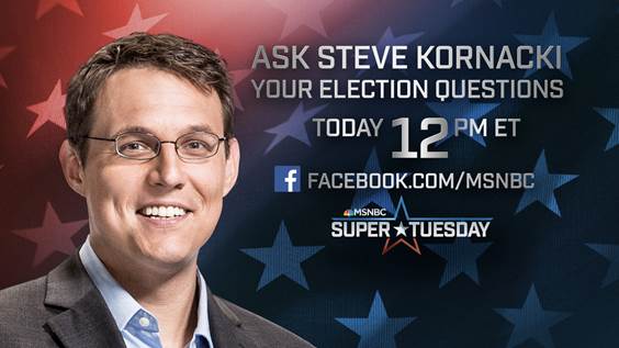 Join Steve Kornacki for a live Facebook chat at 12 pm ET today on the MSNBC Facebook page. Submit your questions in the comments beginning at 11:45, and Steve will answer your questions from 12-12:30. Join in at facebook.com/msnbc.