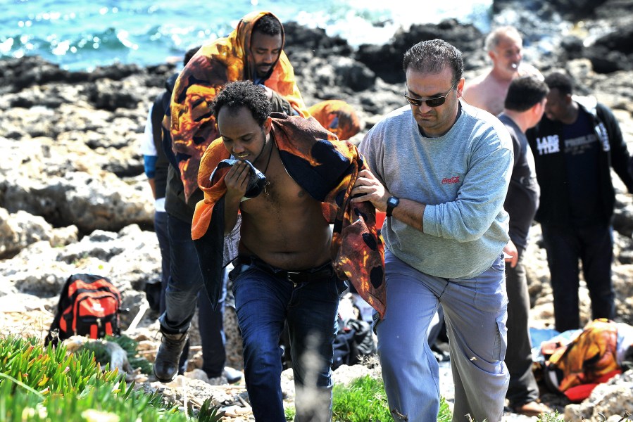 Migrants arrving at Zefyros beach at Rhodes island, Greece on April 20, 2015.EPA