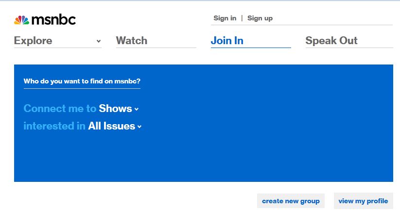 The new msnbc.com feature we’re most excited about are the Groups, show or issue-related spaces where you can discuss stories with other people who share your interests. Once you’re a part of a Group, you can share stories and video to kick off debates—it’s like your own homepage with your fellow msnbc friends. So let’s get started.