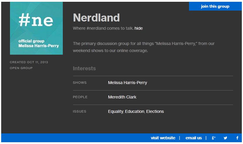 Melissa Harris Perry: Nerdland—http://nerdland.groups.msnbc.com/_tps/index