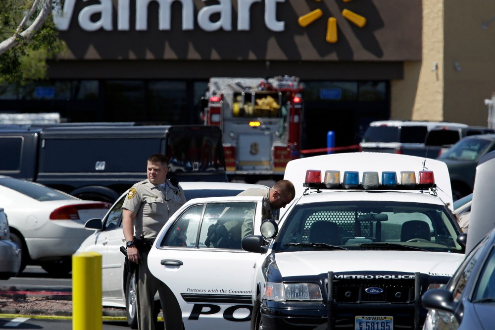 The couple shot two Las Vegas police officers who were eating lunch at a pizza restaurant, then minutes later killed a third person at a nearby Wal-Mart. The woman then killed the man before turning the gun on herself, in what police have said was an apparent suicide pact.