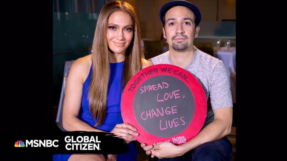 Jennifer Lopez and Lin-Manuel Miranda Want to Spread Love /