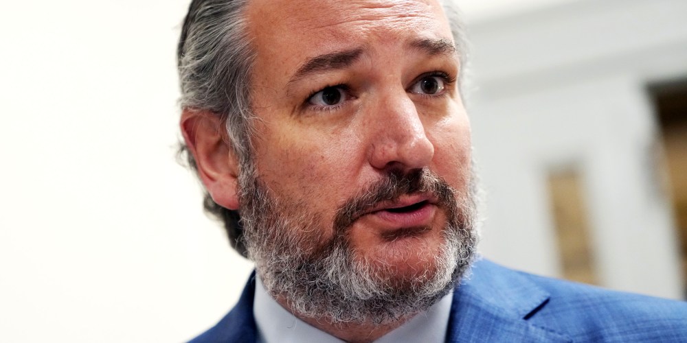 Sen. Ted Cruz, R-Texas, is asked by a reporter about his reaction to the leaked draft opinion indicating the Supreme Court will overturn Roe v. Wade, on Tuesday, May 3, 2022.Tom Williams / CQ-Roll Call via Getty Images