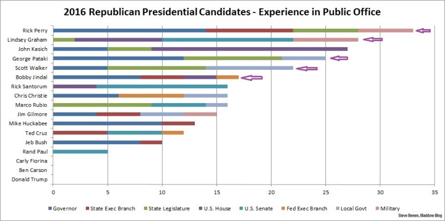 Of the six most experienced candidates in the Republicans' 2016 field, five were forced from the race before a single vote was cast.