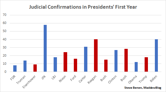 In 2021, Senate Democrats confirmed President Joe Biden's judicial nominees at a pace unseen in decades.