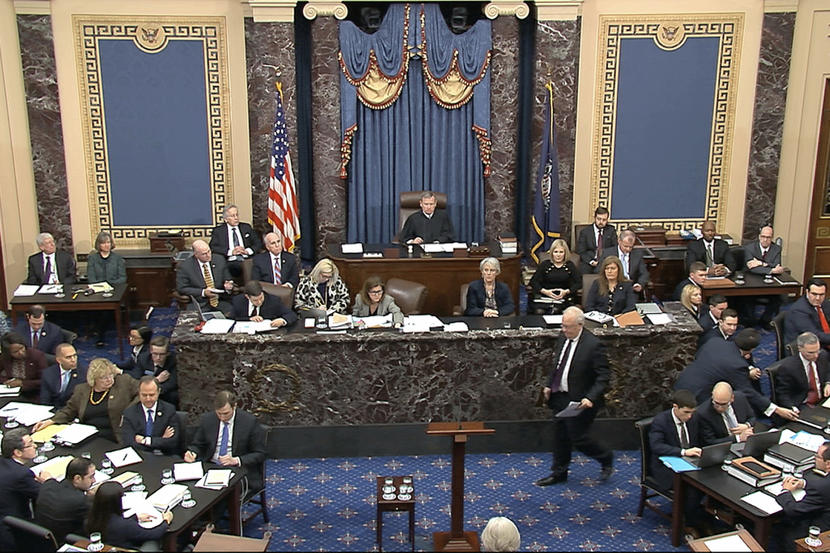 In this image from video, Ken Starr, an attorney for President Donald Trump, walks to the podium to speak during the impeachment trial against Trump in the Senate at the U.S. Capitol in Washington, Monday, Jan. 27, 2020. (Senate Television via AP)AP
