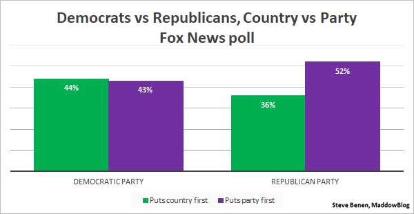 The latest national Fox News poll offered quite a bit of bad news for Republicans. Voters aren’t impressed with their Supreme Court nominee, aren’t eager to vote for their candidates in the midterm elections, and don’t approve of their president’s job performance.