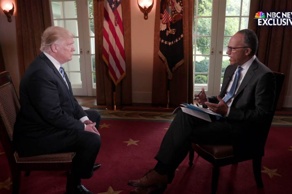 HOLT: Monday you met with the deputy attorney general, Rod Rosenstein–TRUMP: Right.HOLT: Did you ask for a recommendation [on Comey]?TRUMP: What I did is, I was going to fire [Comey]. My decision, it was not–HOLT: You had made the decision before they came in the room.TRUMP: I was going to fire Comey.