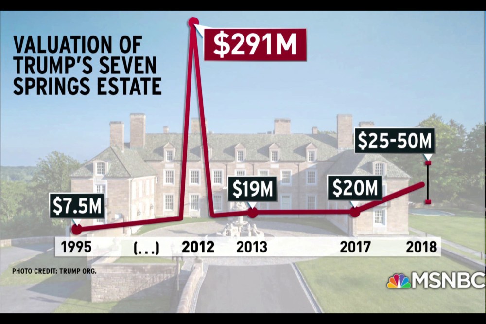 And in the case of his mansion in Westchester County, according to documents produced by Cohen, Trump briefly valued the property at $291 million in 2012.