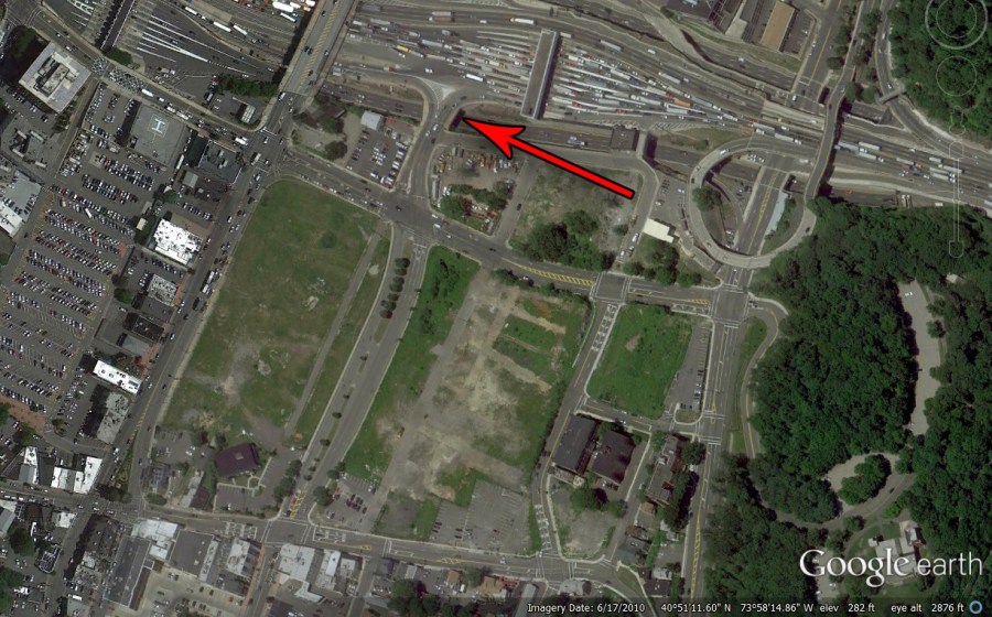 Since the development is still being designed, this may not be exactly what the place ends up looking like, but here’s Google Earth’s view of “Development Area Five,” the land where the Hudson Lights development is to be built. It’s hard not to see the convenience of that Fort Lee on-ramp, or to imagine the inconvenience of a massive bridge-related traffic jam seizing the development’s streets.
