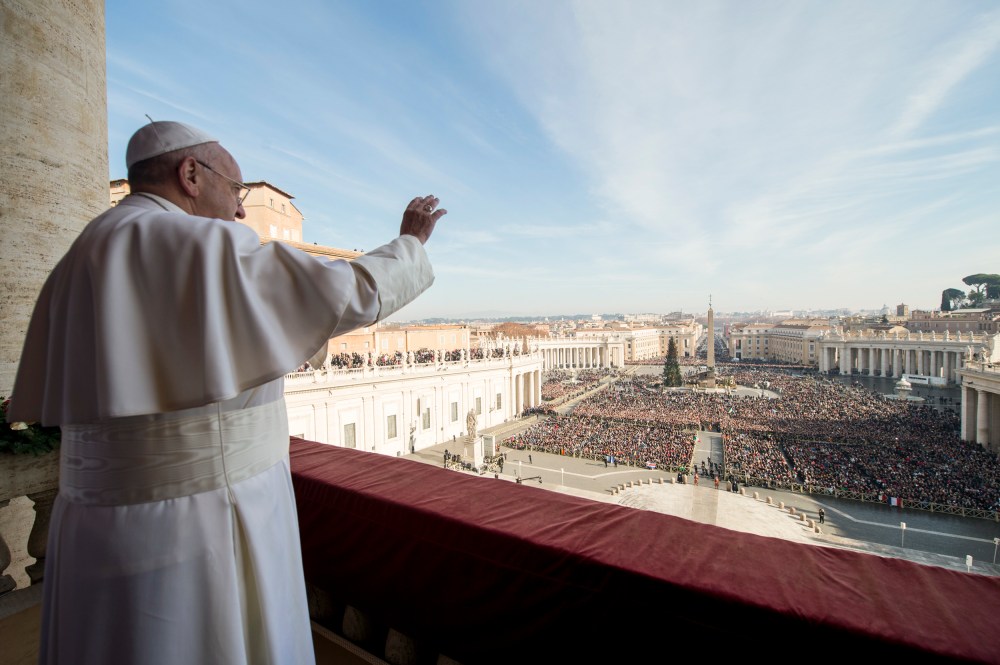 Pope Francis delivers his "Urbi et Orbi" (to the city and to the world) blessing from the central balcony of St. Peter's Basilica at the Vatican, Friday, Dec…AP