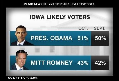 As we’ve said – the fact that TV ad money is being spent most aggressively in the Midwest, rather than in new South states like Florida and Virginia, has to make the Romney campaign feel good. But Romney still must win one of these states. And new NBC/WSJ/Marist polls show the president holding onto a small but significant lead in two of them. Our pollster Lee Miringoff, director of the Marist Institute for Public Opinion, says the numbers look strikingly similar to the ones we saw a month ago: “You have to reset back into mid-September. That’s where we are in these two states.”