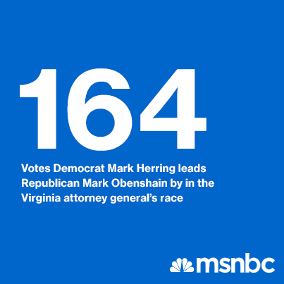 Herring’s rival, Mark Obenshain, urged caution, noting that there was ” a difference of fewer than 200 votes out of more than 2 million votes cast. That’s less than 1/100th of a percent difference.”