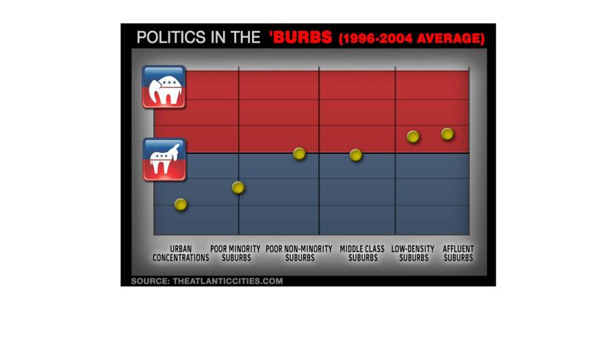 Forget the split between the Northeast and the Deep South, or even the red-blue divide. If you’re living in the suburbs, the political split in this country runs right through your backyard.