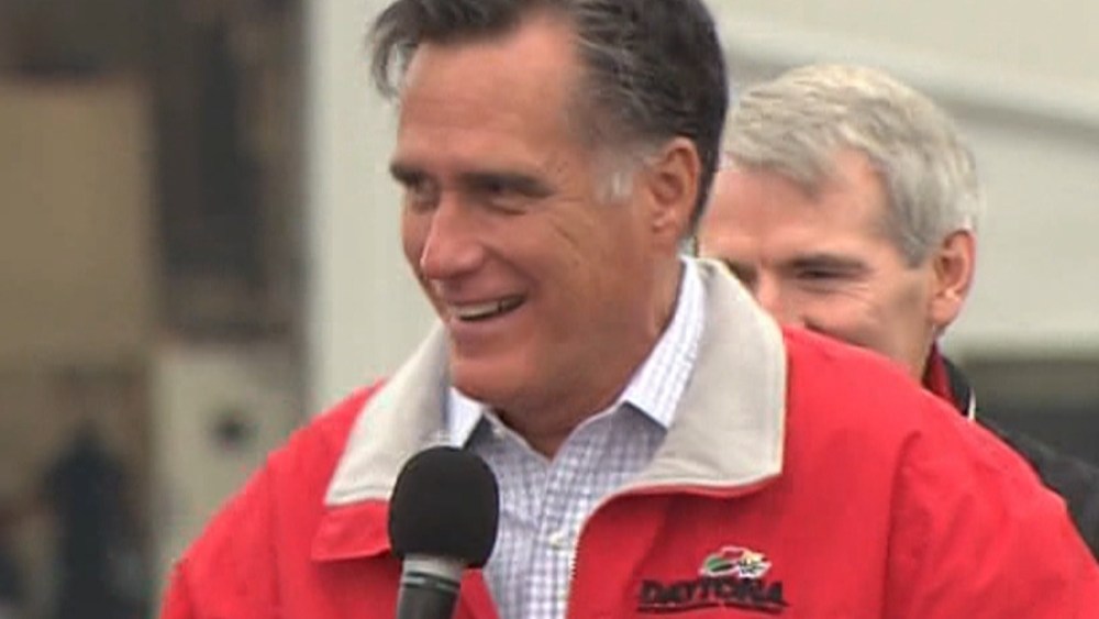 Romney pain: Trying to lead a crowd in a chant