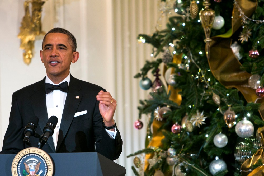 Obama, who appeared to be in a festive mood, agreed to “spread some Christmas cheer.”