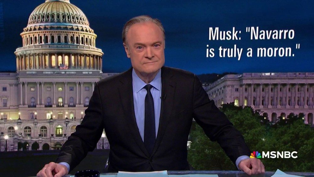 Lawrence: Musk called Navarro a ‘moron.’ What does Musk think of Trump who follows Navarro’s advice? /
