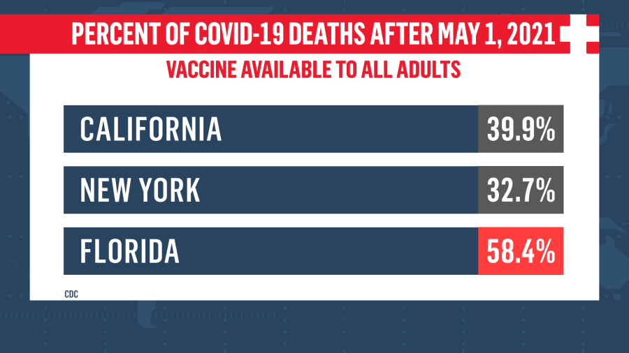 On the one hand, if you look at the overall numbers, you can see why DeSantis likes to make this comparison. According to the Centers for Disease Control and Prevention, Florida ranks 4th in the country with over 78,707 total deaths, behind California, Texas and New York.